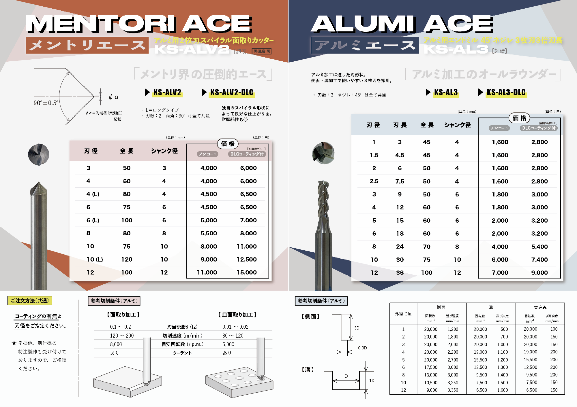 - 超硬メントリカッター 2枚刃+スパイラル形状 【KS-ALV2】コーティング各種
